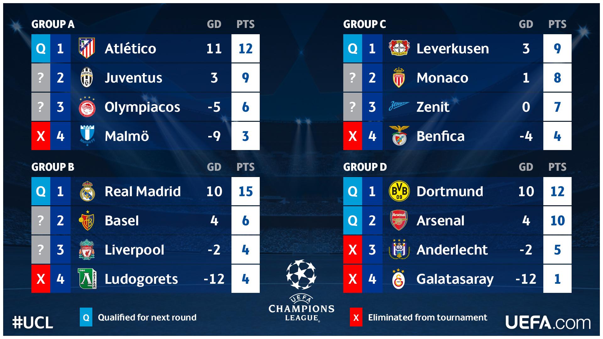 | Турнірна таблиця чемпіонату: ЛЧ 14/15. Груповий етап | |||||||||||||||||||||||||||||||||||||||||||||||||||||||||||||||||||||||||||