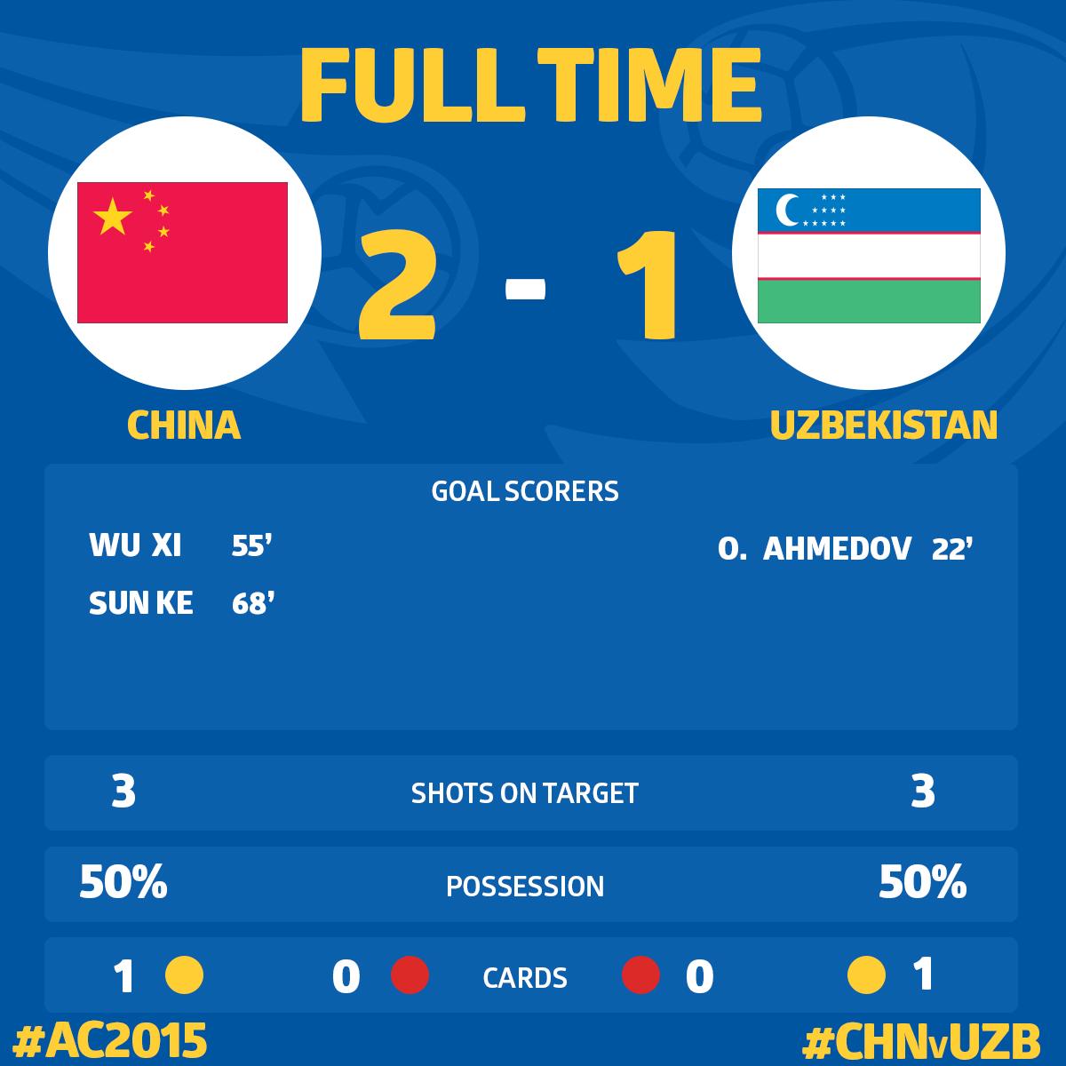 | AAA : (14/01/2015 13:01) Кубок Азии 2015 : Групповой этап,2 тур | китайцям два останні кубки Азії саме Узбекистан не давав вийти з групи - нарешті вони здолали цей узбецький рубіж
