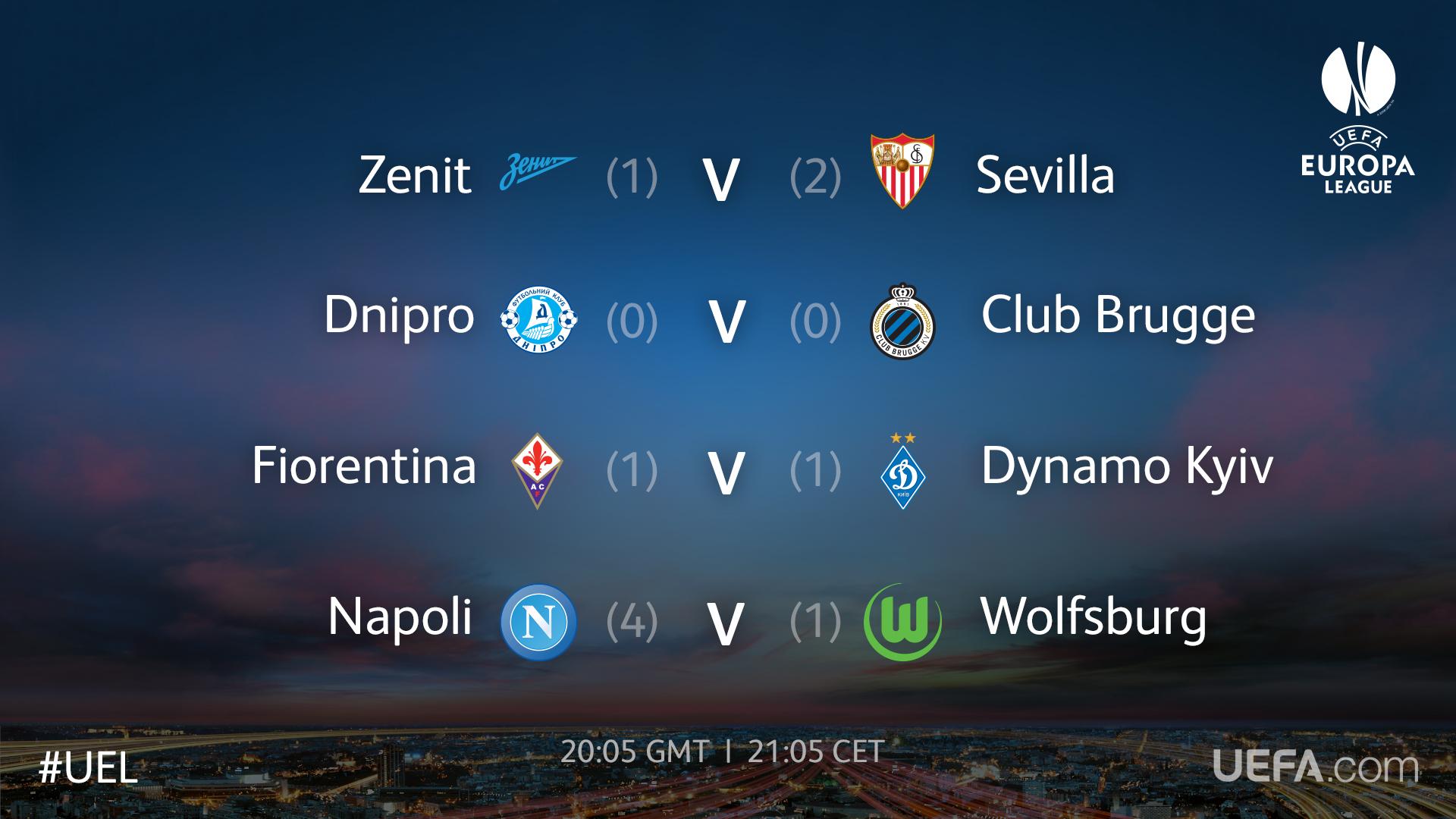 | Днепр - Олимпиакос | Торино - Зенит | **** - **** | **** - **** | **** - **** |
