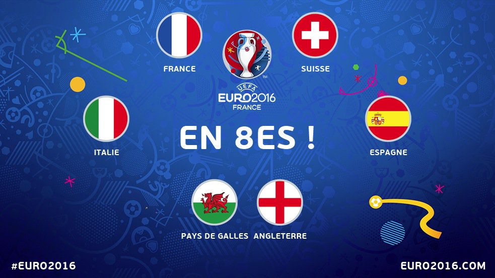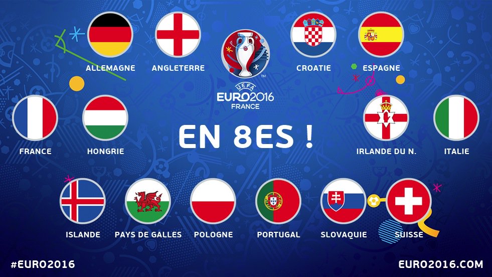 | AAA : (22/06/2016 00:38) Чемпионат Европы 2016 : 3 тур | Виходить так, що в фінал може вийти лише одна з таких команд: Німеччина, Італія, Іспанія, Франція, Англія!!! Така таблиця плей офф.