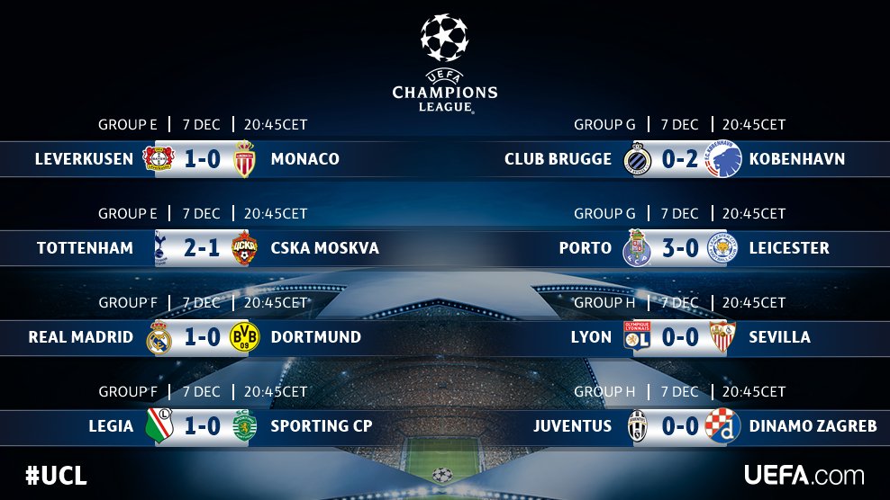 | AAA : (08/12/2016 00:19) ЛЧ. Групповой этап 16/17 : 6 тур | жеребкування в понеділок 12.12