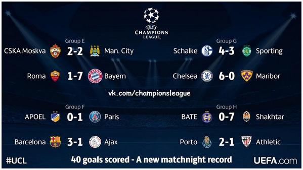 | AAA : (22/10/2014 21:52) ЛЧ 14/15. Груповий етап : 3 тур | 40 голів у 8 матчах - рекорд