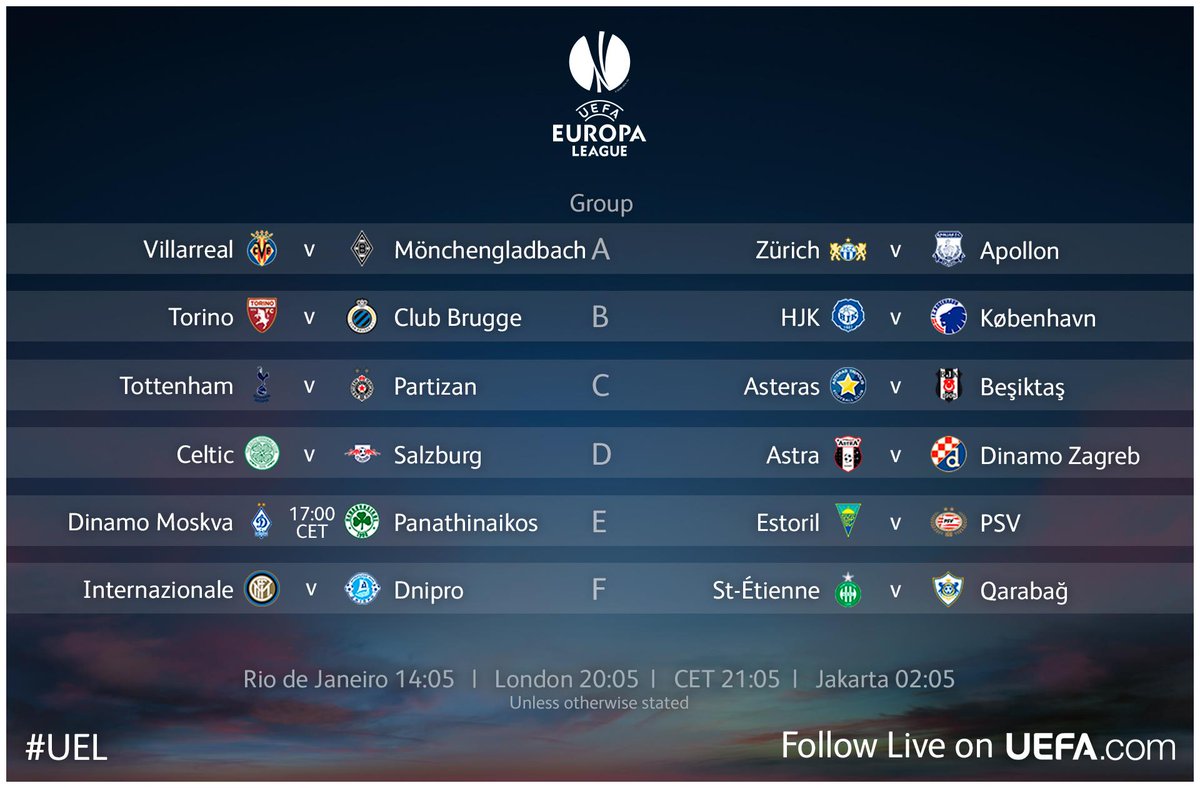 | Zhostir : (27/11/2014 16:19) ЛЄ 14/15. Груповий етап : 5 тур | Адмінам, Динамо М - Панатінаїкос, початок матчу о 18:00.