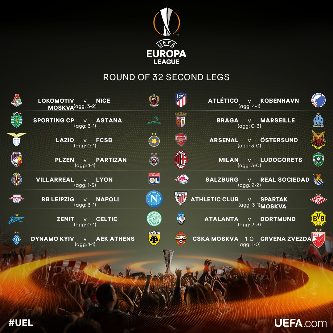 | Прогнози | Результати ігрового дня: ЛЄ 17/18. Плей офф : 1/16, матчі у відповідь ЛЄ 17/18. Плей офф : 1/16, перші матчі <= попередній Ігровий день (Турнір) (Matches: 16) => Наступний Ігровий день: ЛЄ 17/18. Плей офф : 1/8, перші матчі | |||||||||||||||||||