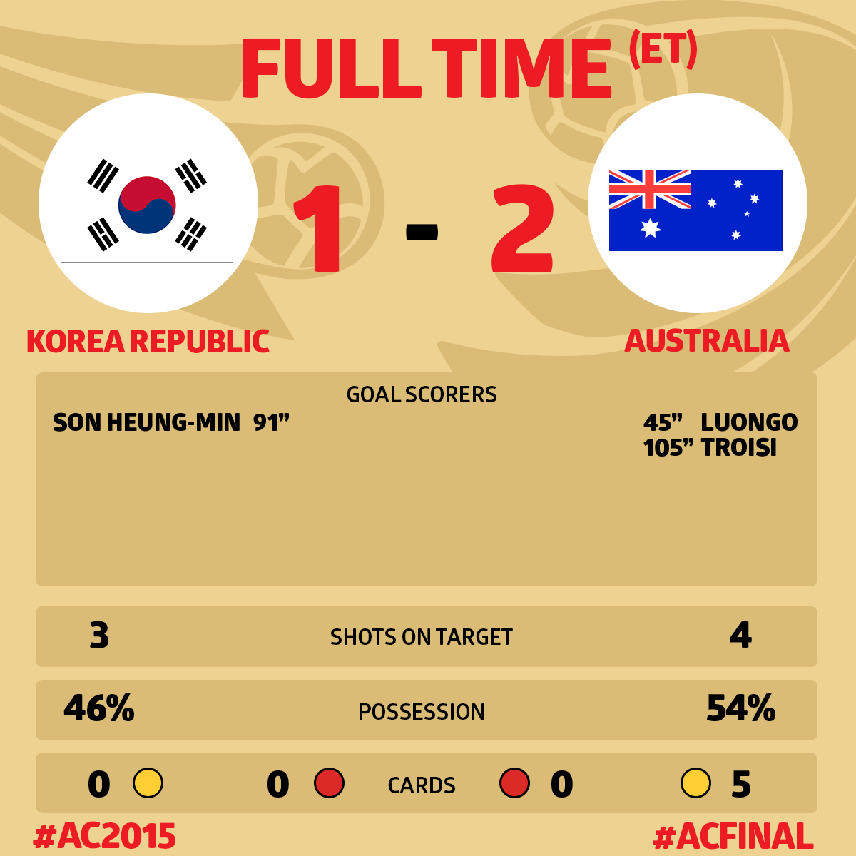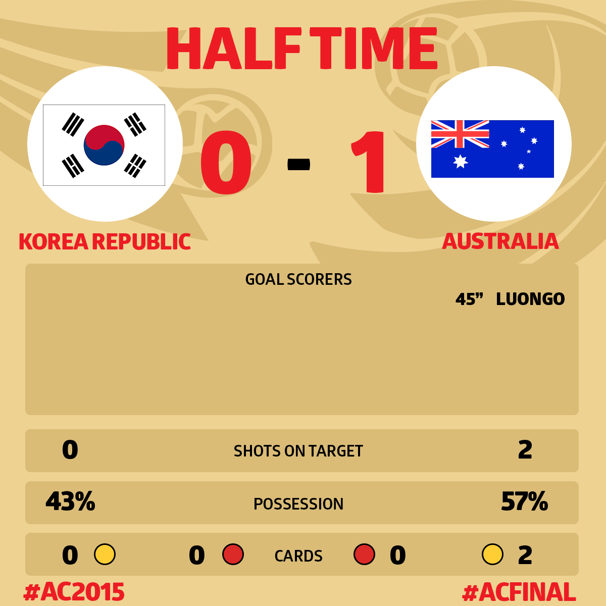 | AAA : (31/01/2015 12:49) Кубок Азии 2015 : финал + матч за 3 место | 1:1
